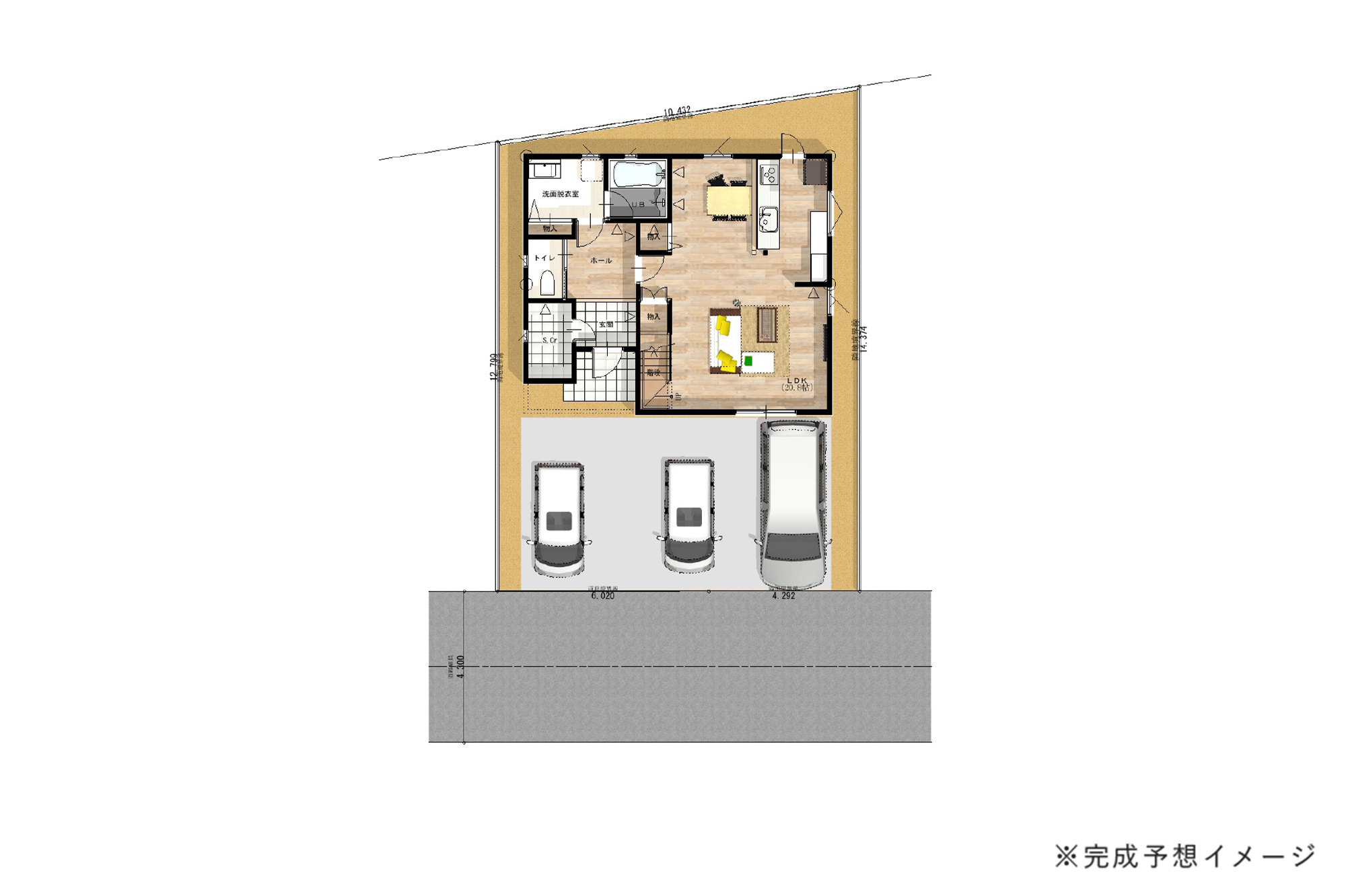 - 並列3台駐車可能